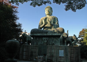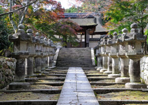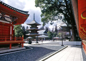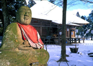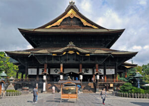 This temple probably moved to this site in the middle of the 7th century. Nagano began as a town built around the temple. The Zenkô-ji complex is under the administration of the Buddhist Tendai (Tendai-shû) and Jôdo School (Jôdo-shû). Buddha Amida is worshipped in the temple, in the form of one of the first Buddha statues to reach Japan. In the 16th century, Zenkô-ji served the sovereign UESUGI Kenshin as a base for a total of five battles, which he fought near the temple between 1553 and 1564 against his arch-rival TAKEDA Shingen.