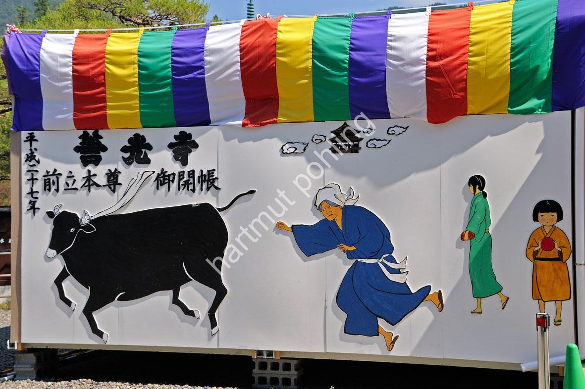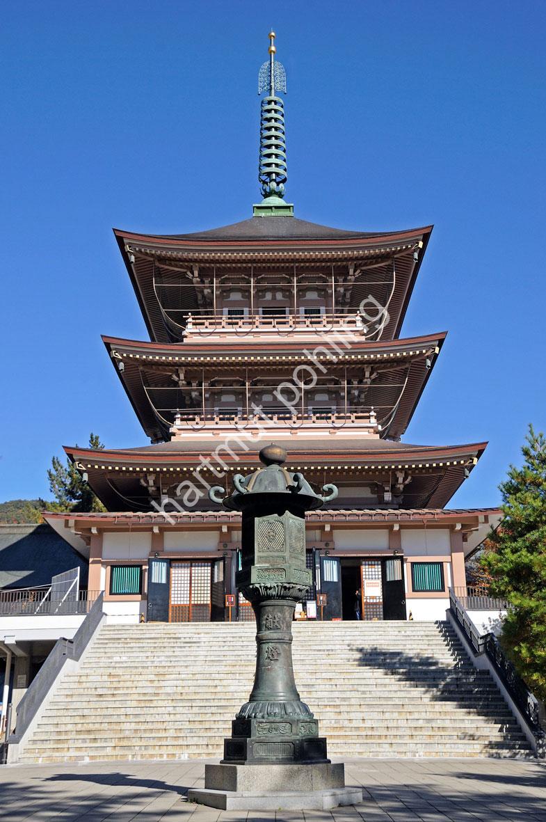 Snow-rich prefectural capital and pilgrimage centre with 368,000 inhabitants, located in a high basin northwest of Tôkyô. Nagano, still called Zenkô-ji until 1890, was founded in front of the temple of the same name, Zenkô-ji, as a so-called monzen-machi, “village developing in front of the gate”. The city was the main venue for the “18th Winter Olympic Games” and the “7th Winter Paralympic Games” in 1998. It hosted also the “8th Special Olympics World Winter Games” in 2005. Nagano also serves as a gateway to surrounding tourist destinations.