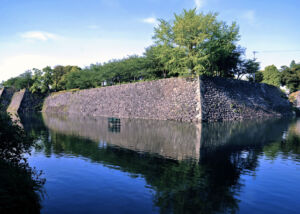 The castle tower was built as early as 1586, six years later the castle moats and the high wall in the south had been built. The castle tower, which burned down in 1602 due to lightning, was not replaced; a three-storey watchtower served as a substitute. In 1620 the residence in the main castle and in 1631 the residence in the Ni-no-maru were lost by fire. In 1759 and 1808, the castle was again ravaged by fires. 1872, after the Meiji Restoration, the castle grounds served as a army administrative headquarters. After 1945, Kanazawa University first used the grounds, and later they were given to the city, which converted them into a park. The “Ishikawa Gate” and the “Thirty Clafter Longhouse”, both registered as Important Cultural Properties, remain from the castle.