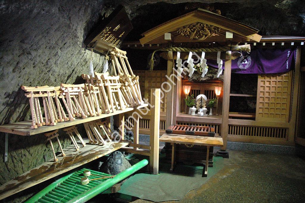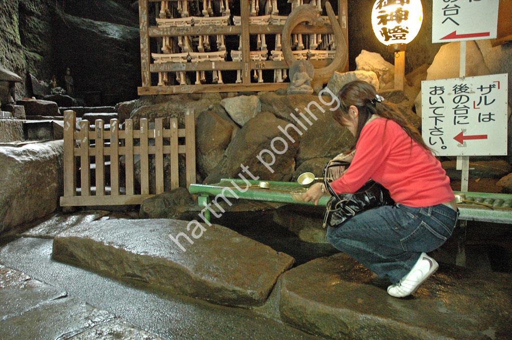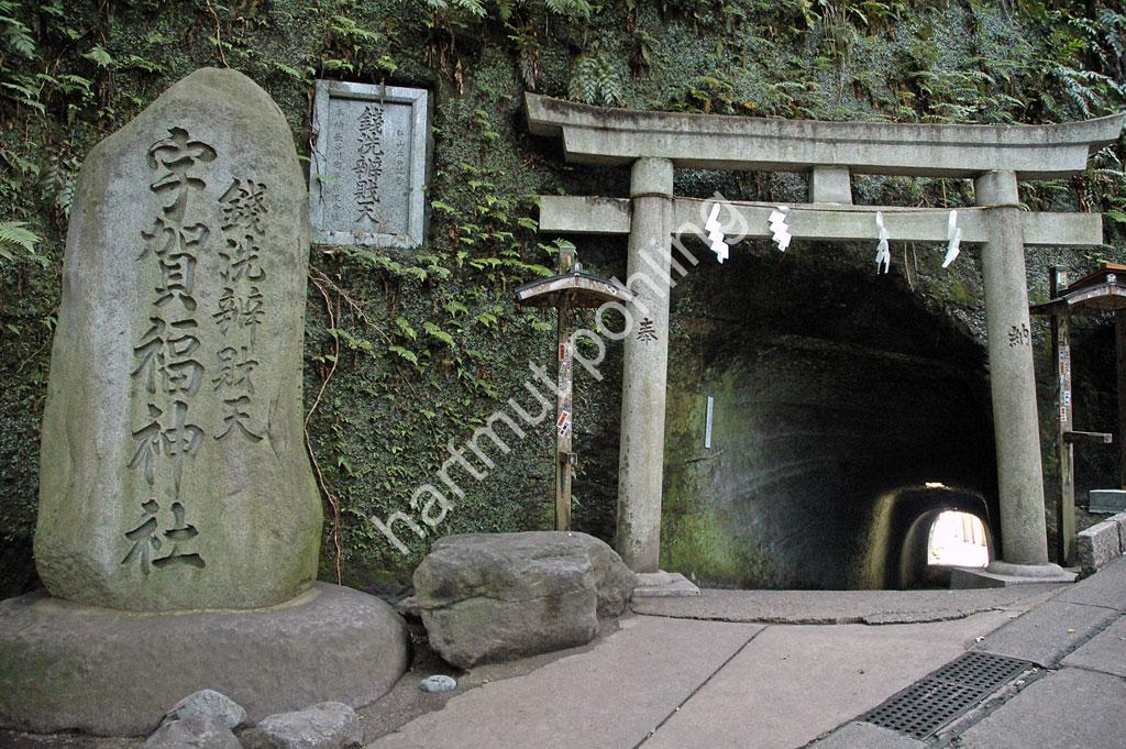 The Zeniarai-benten (zeni = money; arai = wash), the much-visited sanctuary of the Benten / Bezaiten (Buddhist protector deity, but also worshipped in Shintô, where she is one of the shichifukujin (“Seven Lucky Gods”), probably dates back to the beginning of the Edo period (1603-1868). In addition to its healing effect, the spring in the cave is also said to help people achieve wealth – especially the faithful who wash their money here on days of the snake and thus gain two or three times the amount.