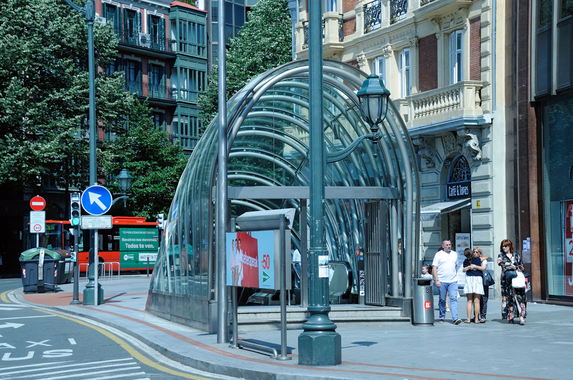 “Fosteritos” can be found at some entrances to the Bilbao Metro. They are shaped like shells and protect the stairs leading to the stations from the rain.