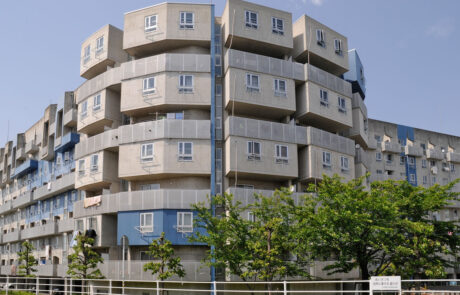 The project “Gifu Kitagata Apartments” was led by the Japanese architect ISOZAKI Arata, who was commissioned by the City of Gifu to put together a team of female architects – consisting of two Japanese, one English and one American woman: SEJIMA Kazuyo, Christine HAWLEY, TAKAHASHI Akiko and Elizabeth DILLER. The coordinator of the landscape architecture was Martha SCHWARTZ.