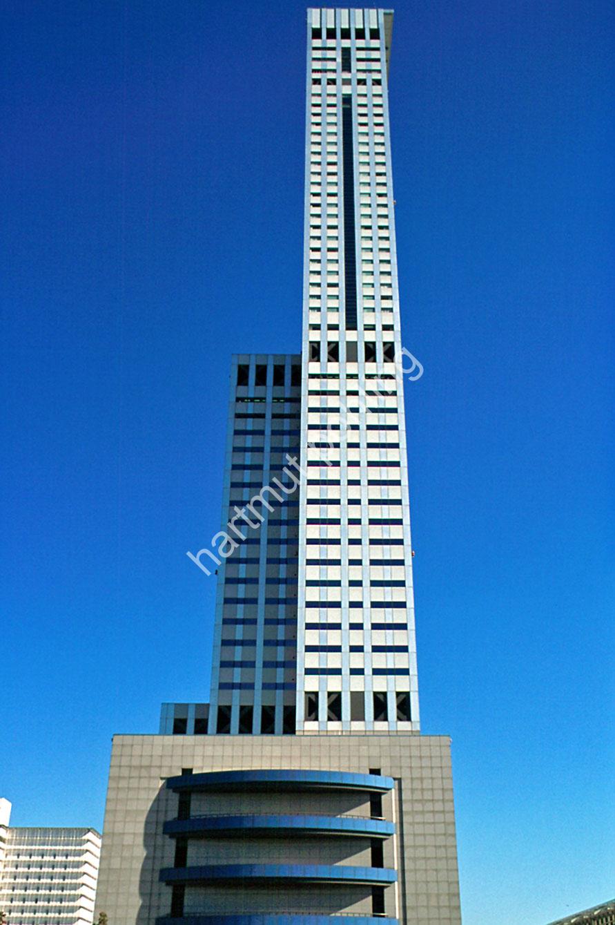 The Rinku Gate Tower is a 256-metre skyscraper in the city of Rinkû / Ôsaka. The 56-storey building was completed in 1996 to the design of YASUI ARCHITECTS & ENGINEERS and NIKKEN SEKKEI. The tower was conceived in the mid-1980s during the planning of Kansai International Airport. Originally, the plan was to build twin towers on the site which would form a “gate” facing the airport. By the time construction began in 1992, the Japanese asset price bubble had collapsed and the plan to build the second tower was scrapped.