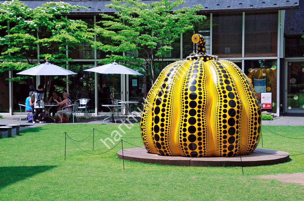 2015-16 exhibition in the “Matsumoto City Museum of Art”: Kusama doll; polka dog “Toko-ton”; yellow pumpkin; thinking pumpkin | 2017 orange pumpkin shown on different places in Kyôto | 2019 yellow piano in Tôkyô Metropolitan Government Building on which everyone is allowed to play